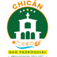 Escudo: Encabezado con la leyenda “ALTIVO ERES CHICÁN Y PROGRESISTA”, en la parte superior se disponen el gavilán con sus alas abiertas, como símbolo de libertad, altivez, dominio, conocimiento y osadía; el cuerpo mismo del escudo se divide en cuatro secciones, en primera instancia se presenta el paisaje andino de la parroquia, luego se encuentra la Chola de Chicán, la religión católica se ve representada por la imagen de la iglesia central, finalmente se manifiesta la importancia del trabajo agrícola como sustento de la población. Este escudo se encuentra envuelto por la bandera parroquial junto a una caña de azúcar y la bandera cantonal junto a una planta de maíz.